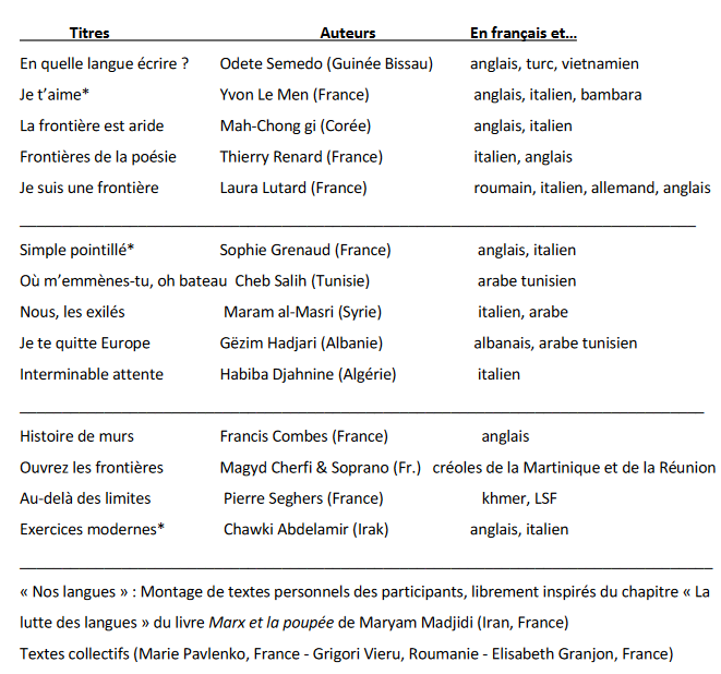Les élèves de la classe de 1G1 ont pu présenter le 21 mai à la Biennale des langues une lecture de textes poétiques qu'ils avaient choisis et traduits. 14 langues étaient représentées. Les élèves ont à nouveau présenté leur travail le 28 au lycée.